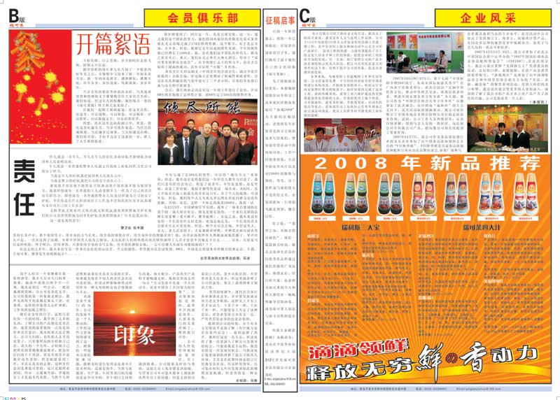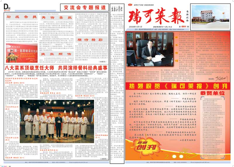 2008年11月,青島瑞可萊餐飲配料有限公司“瑞可萊報”創刊成功。