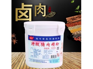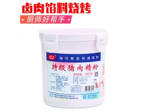 2、將豬肉依次加入鹽,特級豬肉精粉,糖,叉燒醬,酒,生抽,老抽,蠔油,蒜末等材料